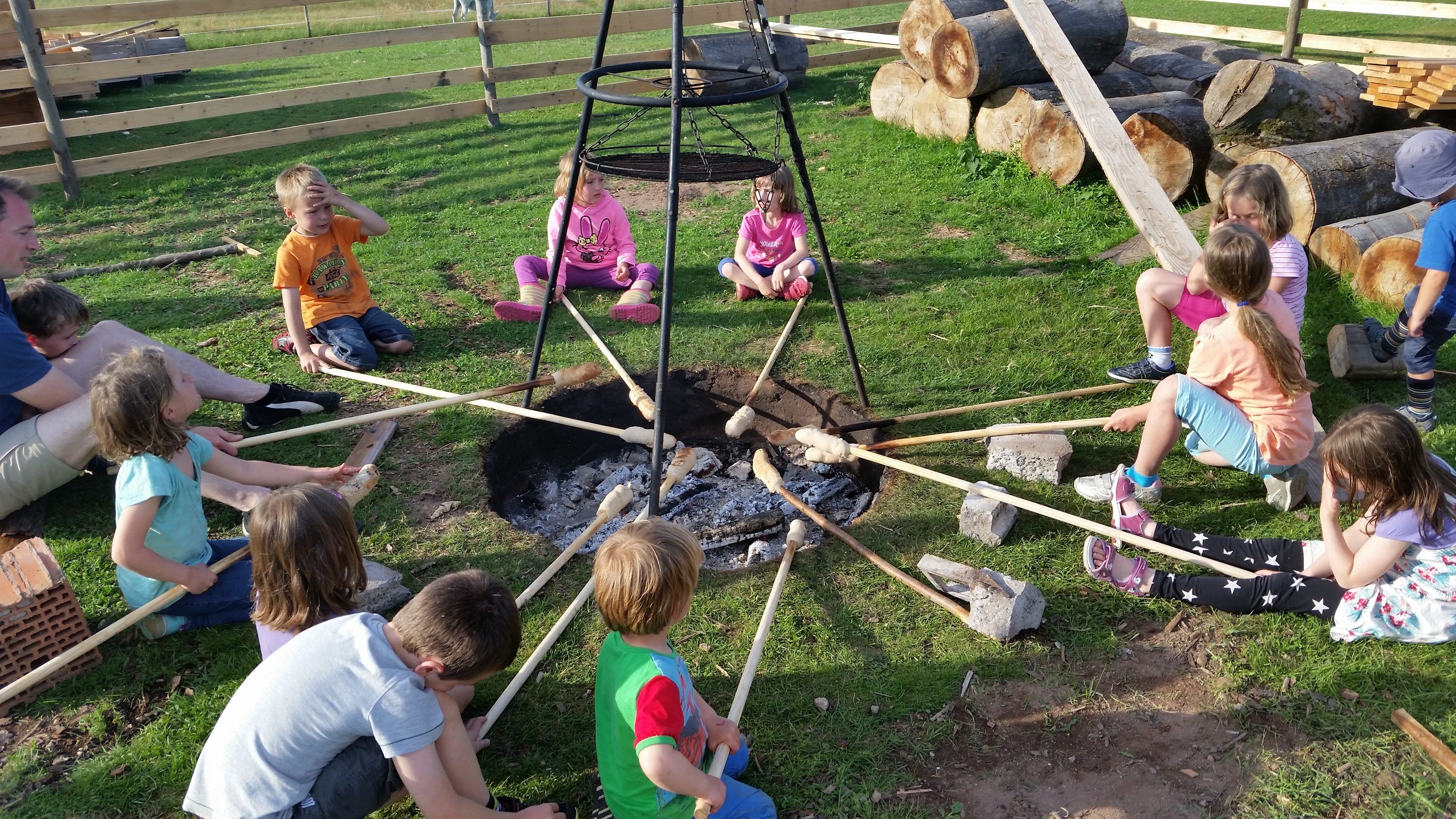 Die bisherigen Erfahrungen, dass sich die Kinder – und auch die Väter – anders und teilweise ausgelassener Verhalten, als wenn die Mütter dabei sind, diese haben sich auch diesmal wieder auf dem Vater-Kind-Wochenende von Freitag bis Sonntag im gemeinsamen Heulager und den unterschiedlichen Aktivitäten bestätigt. Abenteuerlich ging es gleich am Freitag Abend mit Fackeln bestückt auf einer Nachtwanderung los. Zum Tagesabschluss wurden dann die 3- bis 8 Jährigen mit kräftig gesungenen Abendliedern in ihre Schlafsäcke „verfrachtet“.