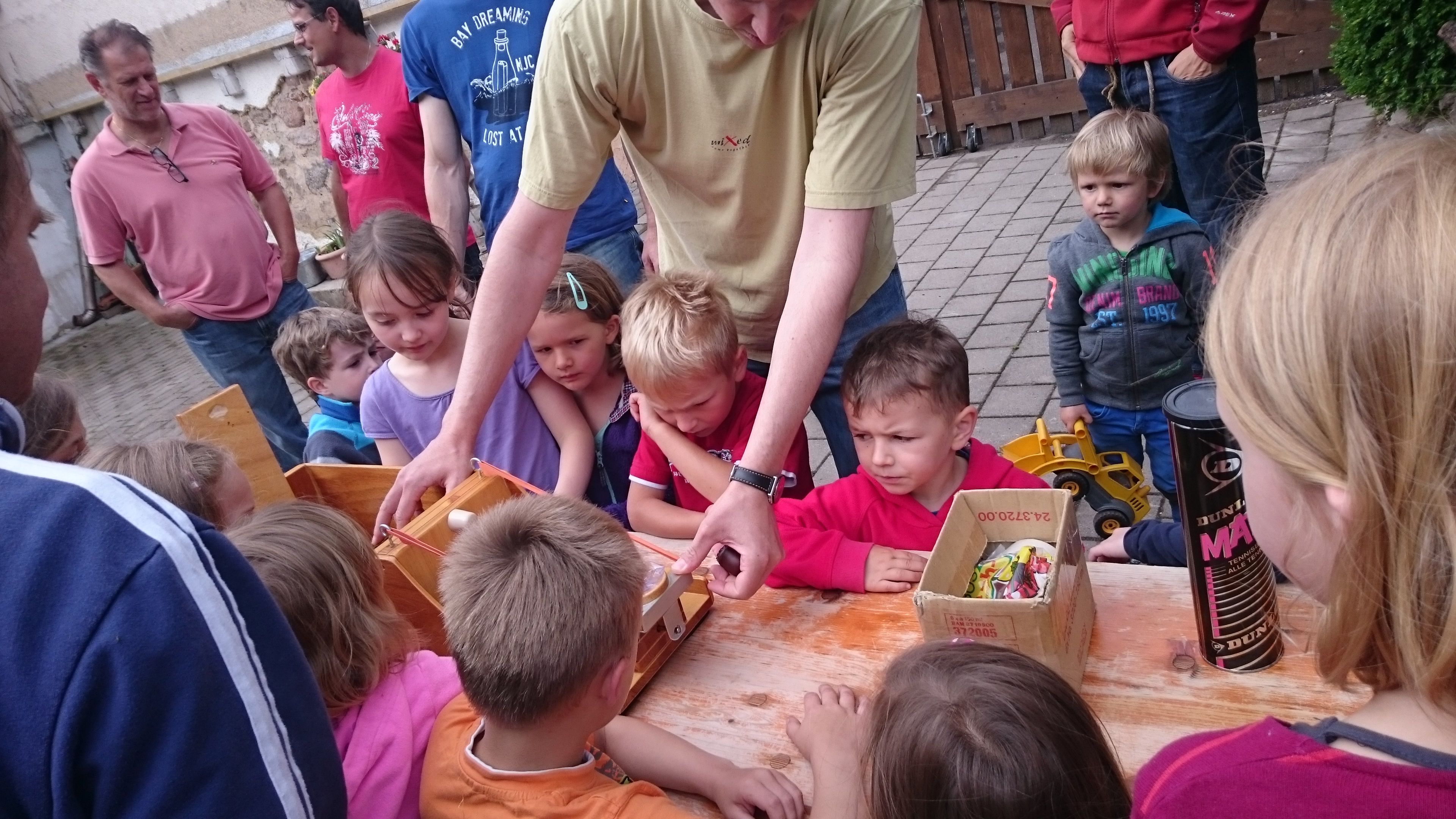 „Beim gemeinsamen Spiel am Samstag Vormittag entpuppte sich sehr schnell die mitgebrachte Mohrenkopfschleuder zum Hit“ schmunzelt Organisator Mörk. „Zum Glück war da keine Mama dabei, die zugesehen hat, was da abging“, waren sich die teilnehmenden Väter einig – und vereinbarten kollektives Stillschweigen. Die waghalsigen Fahrten der Kinder – und der Väter - auf einer nahegelegenen Sommer-Rodelbahn waren das Highlight des Samstag Nachmittags, dem sich dann das obligatorische Lagerfeuer anschloss.